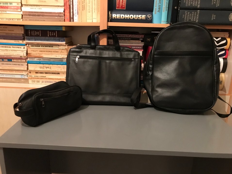 Evrak, Sırt ve Traş çantası set. Birkaç defa kullanıldı, 5i geçmemiştir. Viyandan bir butikten alındı.