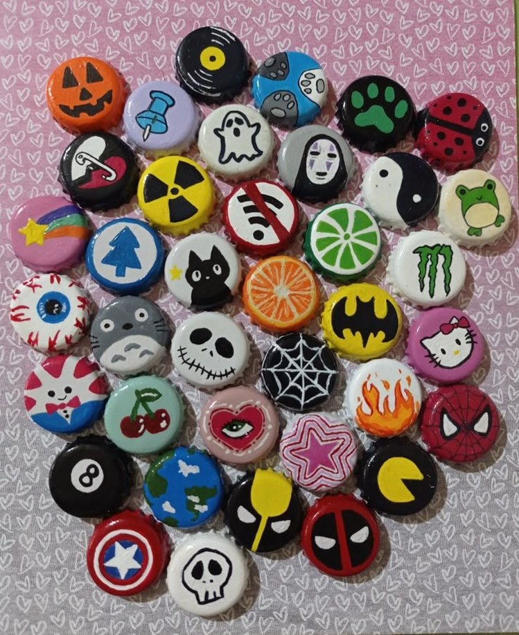 çanta vs üstüne asmak için rozet. kendim yapıyorum, istek resim çizerim. gazoz kapağı boyunda toplu alımda yardımcı olurum