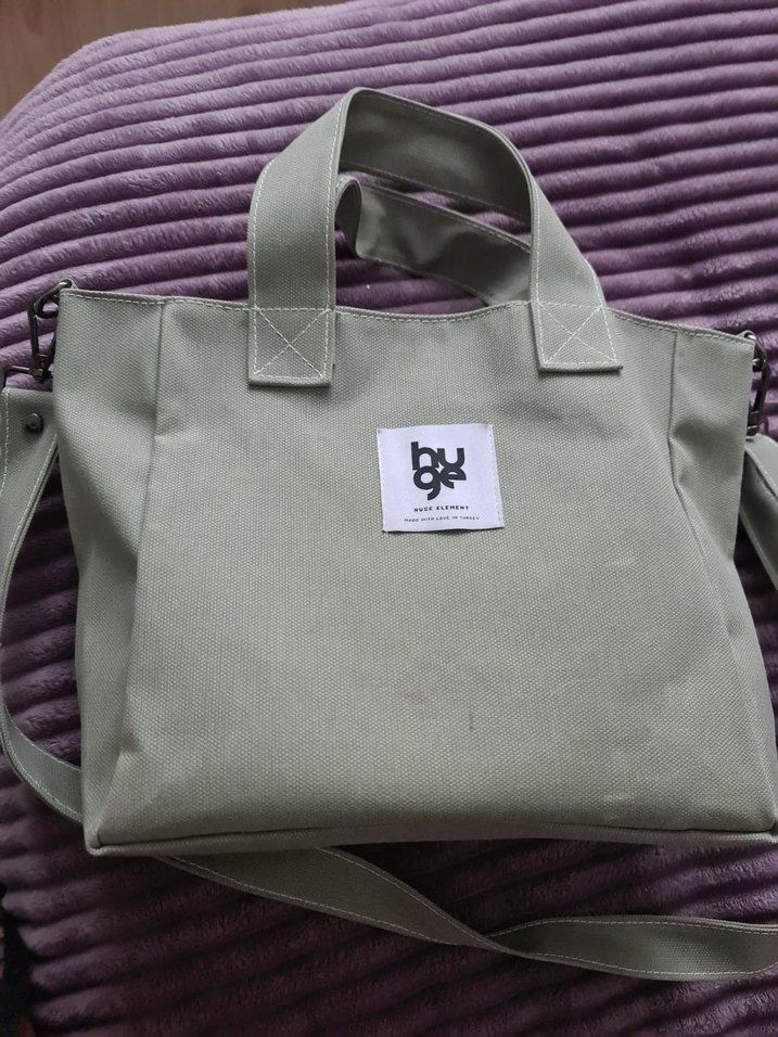 Gri renkte baskılı logolu, sentetik kumaştan yapılmış, sağlam saplı ve çıkarılabilir omuz askılı kadın çantası.