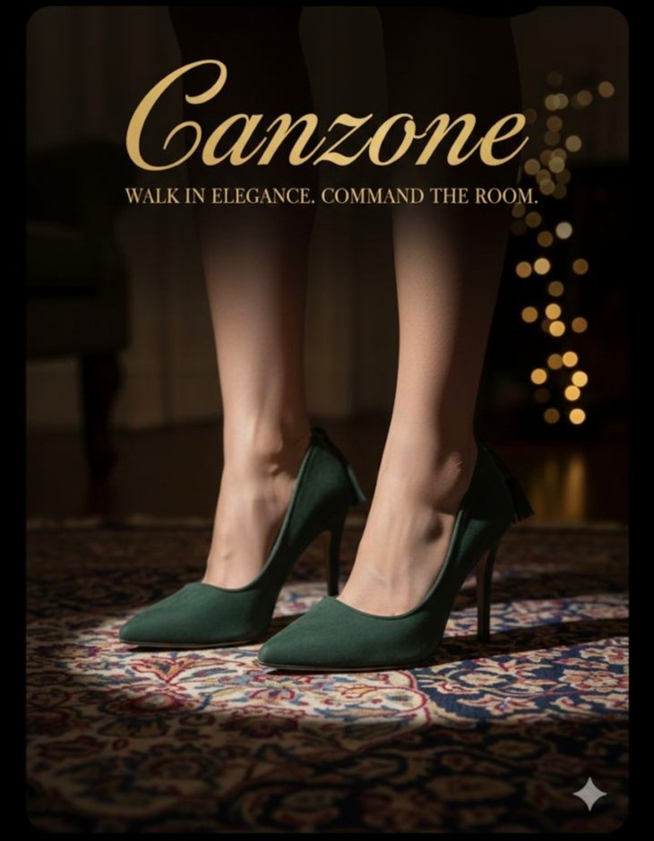 Canzone Şık Yeşil Süet Topuklu Ayakkabı - Arkası Bağcıklı