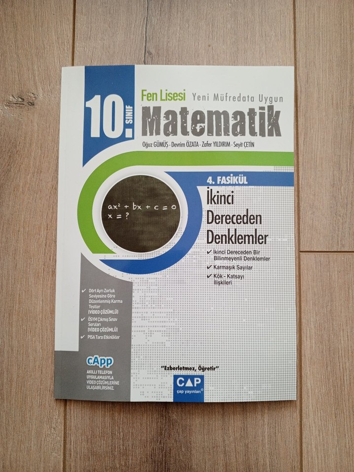 10. sınıf fen lisesi matematik kitabı, yeni müfredata uygun olarak ikinci dereceden denklemler, karmaşık sayılar ve ilgili konuları içerir. Detaylı anlatım ve soru çözümleri sunar. Sıfırdır, uyguna koyuyorum. Sorularınız için mesaj atabilirsiniz.