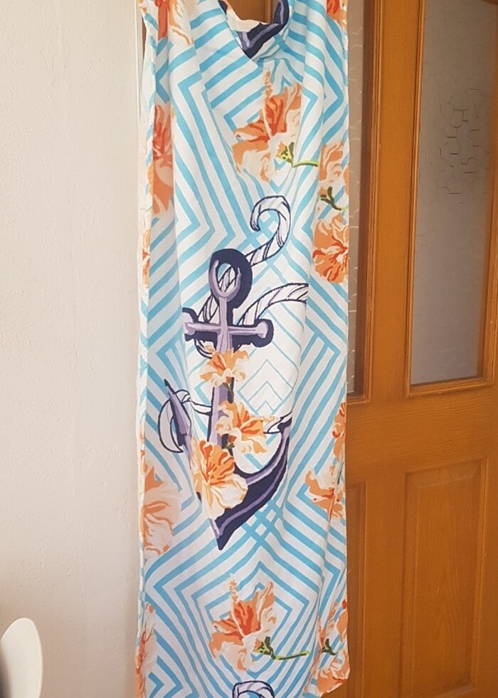Çapa Desenli plaj havlusu 0 pamuk bir kere kullanildi yikandi.En genislik 66,5 cm boy uzunluk 150 cm