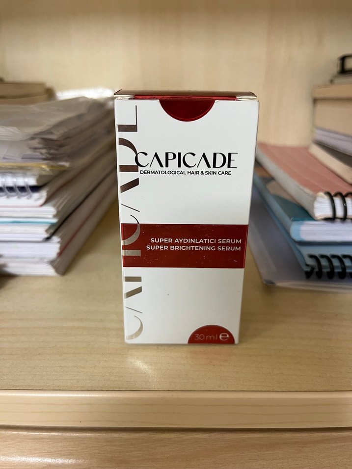 Capicade Super Aydınlatıcı Serum, saç ve cilt bakımı için 30ml şişede parlaklık sağlar. ✨yarısından fazlası dolu doktor önerisi ile eczaneden alındı