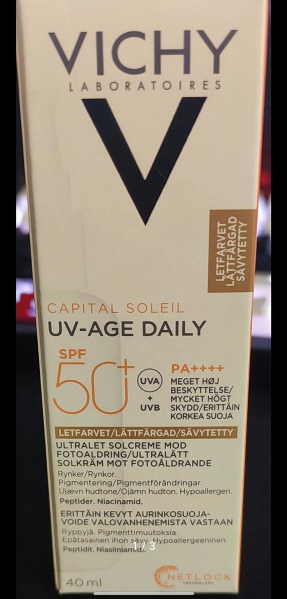 Capital Soleil UV-Age Daily, SPF 50+ ve PA++++ ile UVA ve UVB ışınlarına karşı çok yüksek koruma sağlar. Hafif renkli, foto yaşlanma, kırışıklık, pigmentasyon ve düzensiz cilt tonunu önlemeye yardımcı olan hipoalerjenik güneş kremidir.