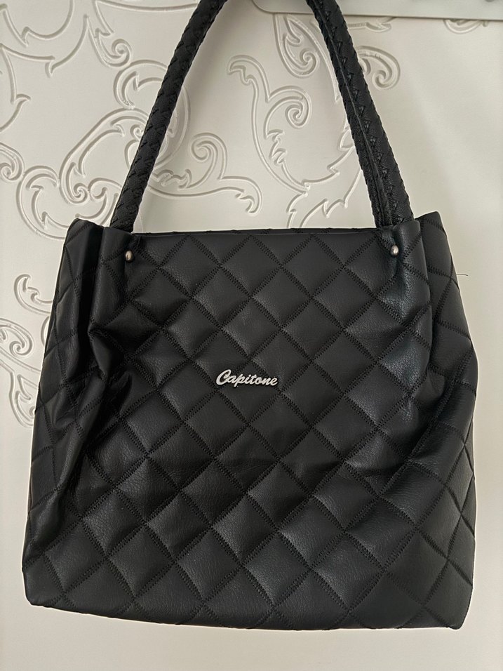 Capitone logosu ve fermuarlı kapanışıyla siyah, parlak kapitone deri kadın çantasıdır. Klasik Paris sokak stili şıklığını yansıtır. Yeni durumdadır#siyahçanta#kolçantası