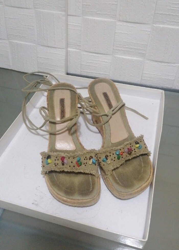 Dolgu topuk kot kumaş ve boncuklu Uzun bağcıklı