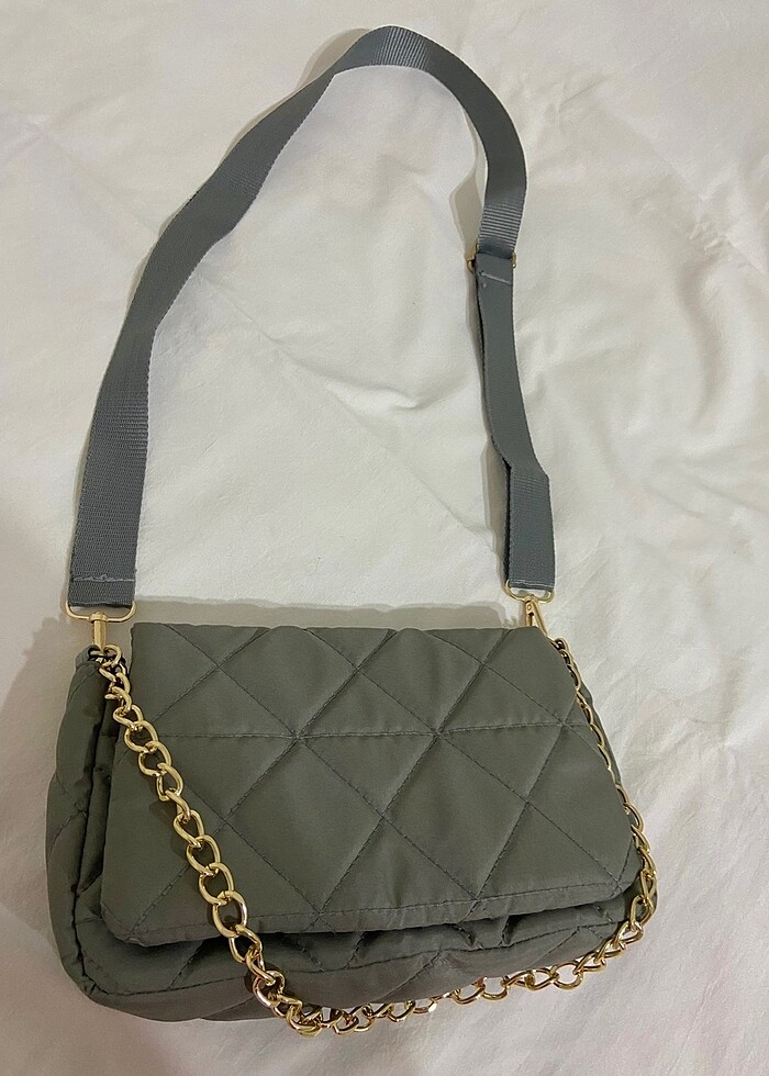 Gri zincirli capitone desen çapraz çanta