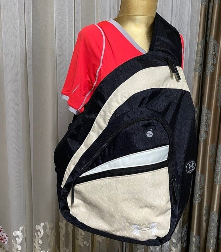 Under Armour Çapraz takılan spor çantası, fermuarlı tasarıma sahip, koyu ve beyaz renk kombinasyonunda, sentetik kumaştan üretilmiştir. Günlük sokak stili için uygundur.