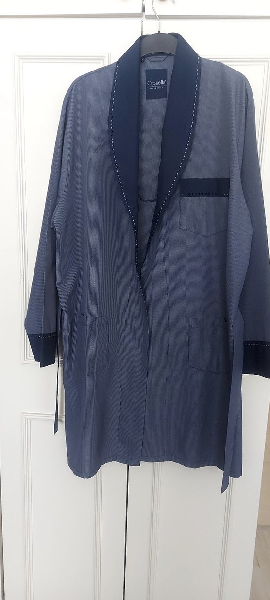 Lacivert klasik tarzda, yumuşak kumaştan yapılmış, cepli ve kuşaklı ,Rahat kullanım sunar. Kol altı 57 , boy 100 cm