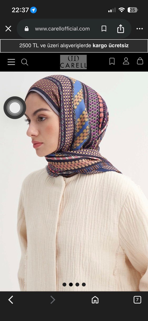 Carely markalı, çok renkli desenli, sentetik kumaştan yapılmış, bohem ve sade tarzda drapeli kadın eşarp.