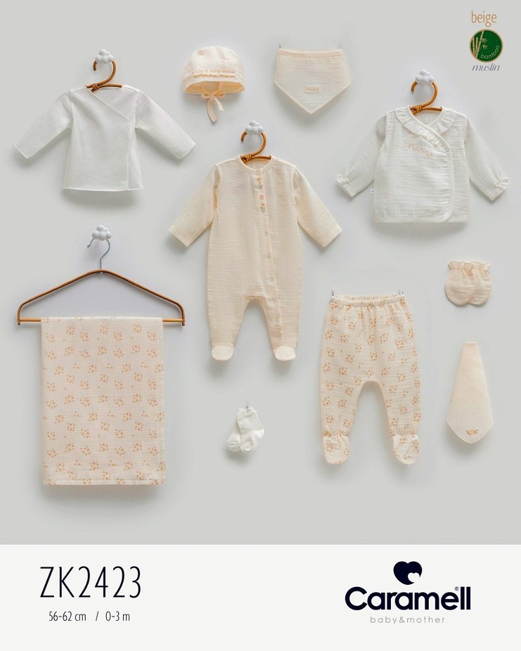 ®️ ÜRÜNLERİMİZİN TAMAMI ORİJİNALDİR. CARAMELL Yaş: NEW BORN- YENİDOĞAN ✅ 1. Kalite Kumaş Orijinal Kalıp #yenidoğan #hastaneçıkışı #erkekbebek #kızbebek Caramell marka, 0-3 ay (56-62 cm) için, nakışlı detaylı ve askılı kollu 10 parçalı bebek kız hastane çıkışı. Rahat ve şık tasarım.