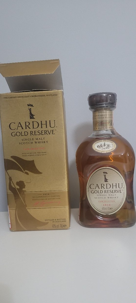 Cardhu Gold Reserve, tek malt Scotch viski olup, kendine özgü kıvrımlı cam şişede sunulur. Zengin ve dengeli aromasıyla dikkat çeker.