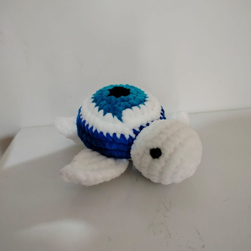 Bu peluş oyuncak kaplumbağa, beyaz gövde ve renkli mavi desenli kabuğa sahiptir. Yumuşak ve sevimlidir. [uzunluğu 20 cm genişliği 10 cm]