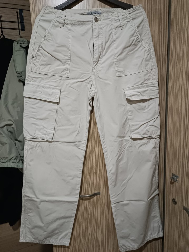 Cargo wide leg beyaz/taş rengi pantalon sokak stile uygun.