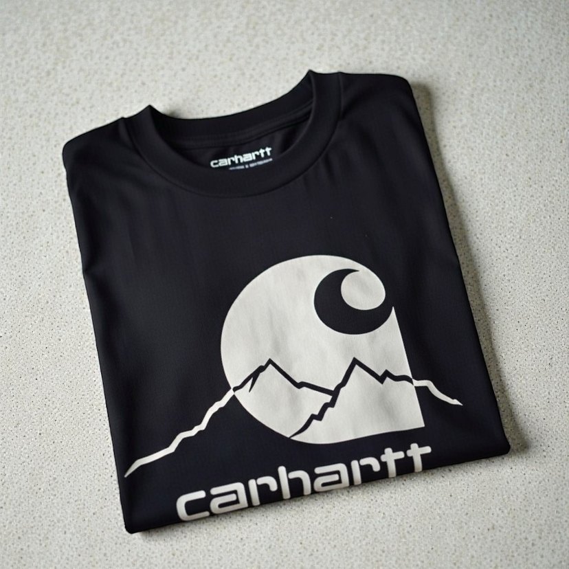 Carhartt marka, pamuk kumaştan, kısa kollu, yuvarlak yaka, rahat kesim siyah tişört. Önünde baskılı dağ deseni bulunur, dış mekan için uygundur. ️
