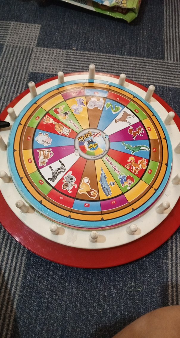 Çeşitli hayvan figürleri ve sayılar içeren renkli, dairesel eğitici oyuncak, çocukların oyunla öğrenmesini sağlar.