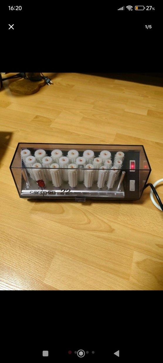 Bej renkli, şeffaf kapaklı saç şekillendirici. Beyaz toplu maşa ve açma-kapama düğmesi bulunur. Saçları şekillendirmek için uygundur. ♀️cihaz sorunsuz çalışıyor 2 adet bigudisi eksik ama hangileri olduğunu bilmiyorum
