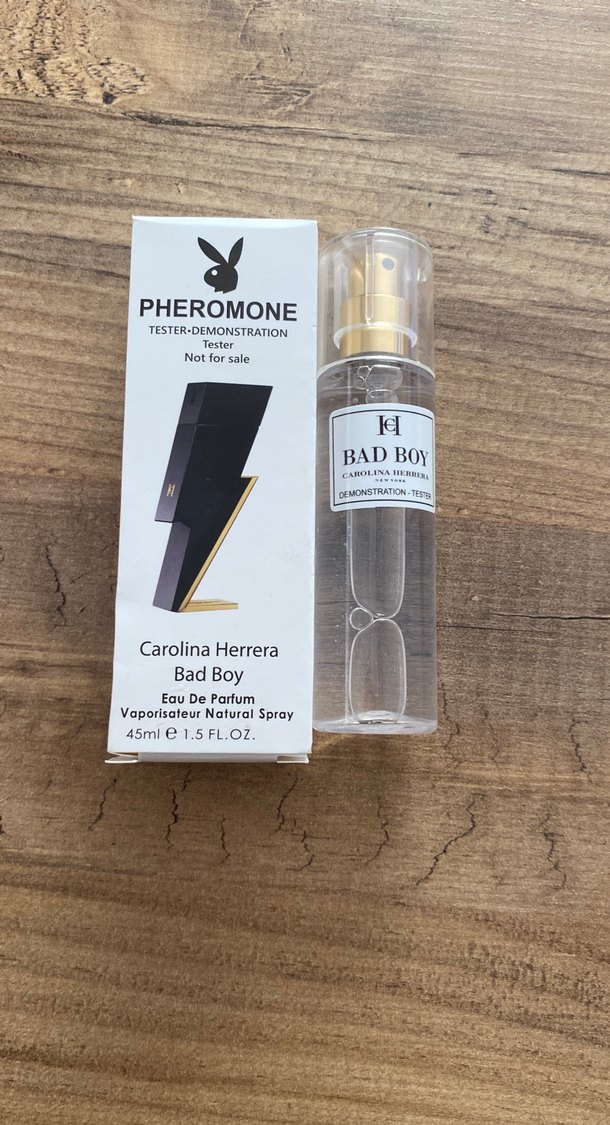 Carolina Herrera Bad Boy Eau De Parfum 45ml tester, doğal spreyli. Satışa uygun olmayan, demonstrasyon amaçlı. Feromon kokusu içerir.