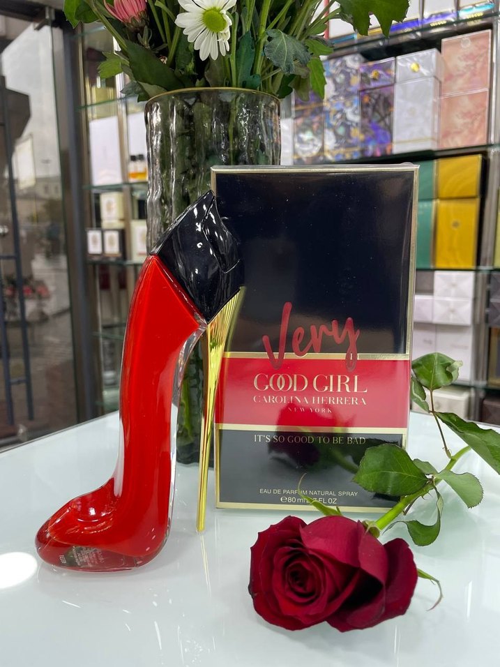 Carolina Herrera Very Good Girl kadın parfümü, yüksek topuklu ayakkabı şeklinde şişede doğal sprey ve etkileyici koku sunar.
