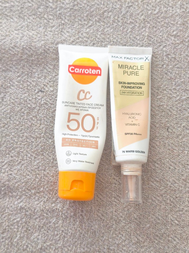 Carroten CC krem SPF 50 ile yüksek güneş koruması sunar. Max Factor Miracle Pure fondöten, hyaluronik asit ve C vitamini ile cildi nemlendirir ve iyileştirir, SPF 30 içerir.