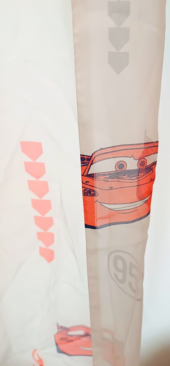 Taç markalı, Cars Pixar baskılı, şifon kumaş çocuk perdesi. Ölçü: En 180 – Boy 200. Temiz ve defosuz. Odaya anında neşe katan, tertemiz ve şık Diğer ürünlerime göz atmayı unutmayın Toplu alımlarda indirim isteyebilirsiniz.