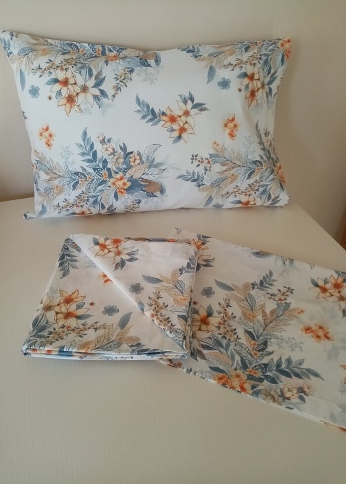 Yüzde yüz pamuklu kumaştan çift kişilik düz çarşaf ve bir çift yastık kılıfı