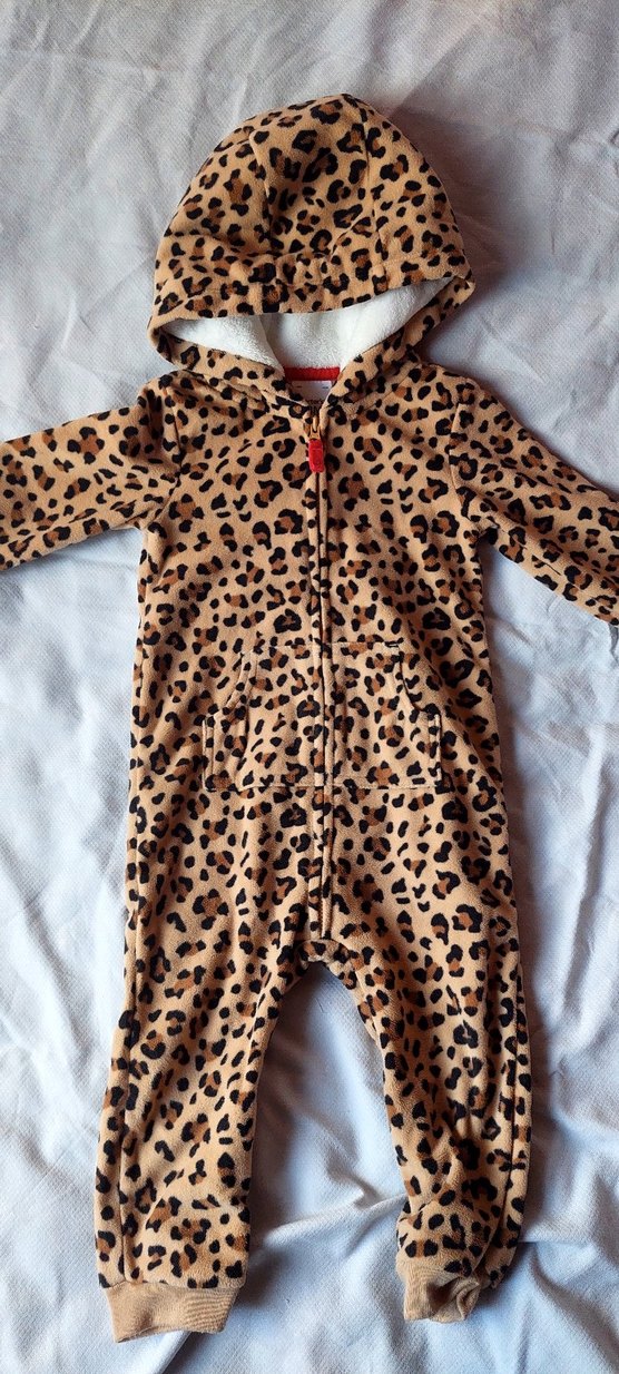Carter's Tulum - Kürklü, Leopar Desenli, 18 Aylık Bebek Uzun kollu, kapüşonlu ve fermuarlı bebek tulumu, renkli leopar desenli ve kürk detaylı, yumuşak ve sıcak kumaştan üretilmiştir.