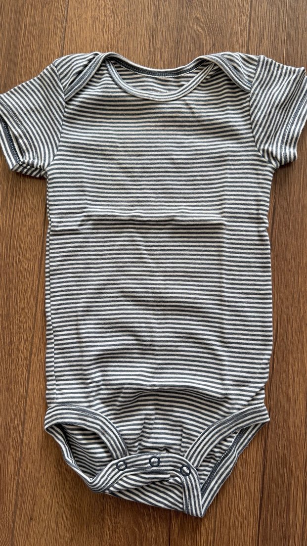 Carters Etiketi yok am sıfırdır hiç kullanılmadı. 18 Ay Pamuklu kumaştan yapılmış, gri çizgili, kısa kollu ve kayık yaka erkek bebek body. Rahat ve sade bir tarz sunar.