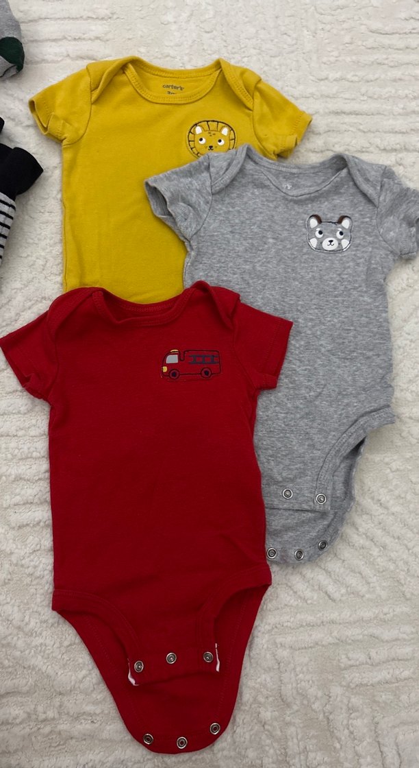Gri renkli, kısa kollu, yuvarlak yakalı bebek body. Hayvan desenli baskılar ve kolay giydirme için düğmeler bulunur. Yumuşak ve sıcak kumaştan üretilmiştir. 3 aylık