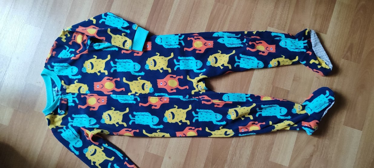 Renkli canavar desenli, kısa kollu, bisiklet yaka, yapışkan bantlı, erkek çocuklar için dar kesim pijama.
