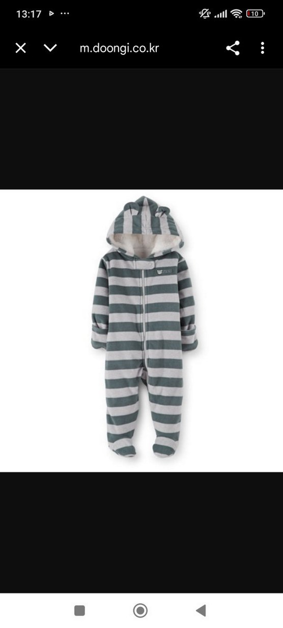 Gri çizgili, örme kapüşonlu bebek tulumu, yumuşak ve sıcak kumaştan yapılmıştır. Ön fermuarlı kolay kullanım sağlar.