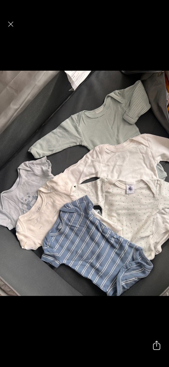 Bu set, bebekler için nötr ve yumuşak renklerde, uzun kollu pamuklu, yuvarlak yakalı beş body içerir, sade ve rahat kullanım sağlar. Çok az giyildi