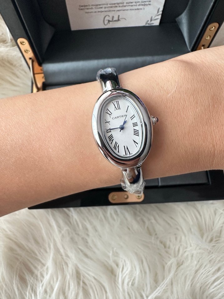 Gri kayışlı, tokalı kadın kol saati. Beyaz kadranda Roma rakamlarıyla modern klasik ve Paris esintili tasarım sunar. ⌚