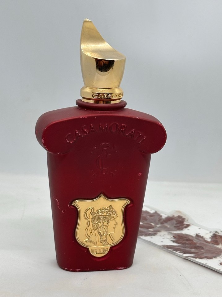 Derin kırmızı mat kaplamalı, altın amblemli ve özel şekilli kapaklı Casmorlay kadın parfümü şişesi. Marka adı şişede kabartma olarak yer alır. Ürün kullanılmadı detaylı görselledim