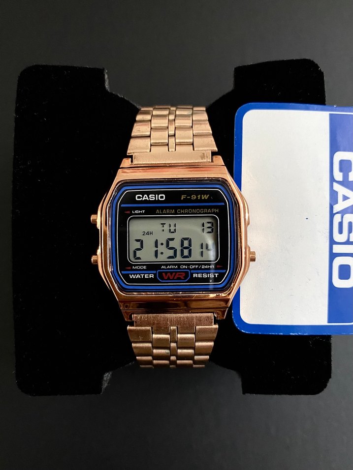 Casio A159W Limited Edition Kol saati, koyu altın renkli ve tokalı metal kayışa sahiptir. Dijital ekran, alarm, kronograf ve suya dayanıklılık özellikleri bulunur. Sınırlı Sayıda Özel Üretimdir