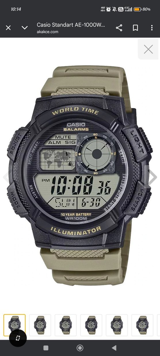 Casio dijital erkek saat, dünya saati, 10 yıl pil ömrü ve 100 metre su geçirmezlik özelliklerine sahiptir. Gri ve bej renklerde, alarm, sessiz mod ve aydınlatma fonksiyonları bulunur. ⌚