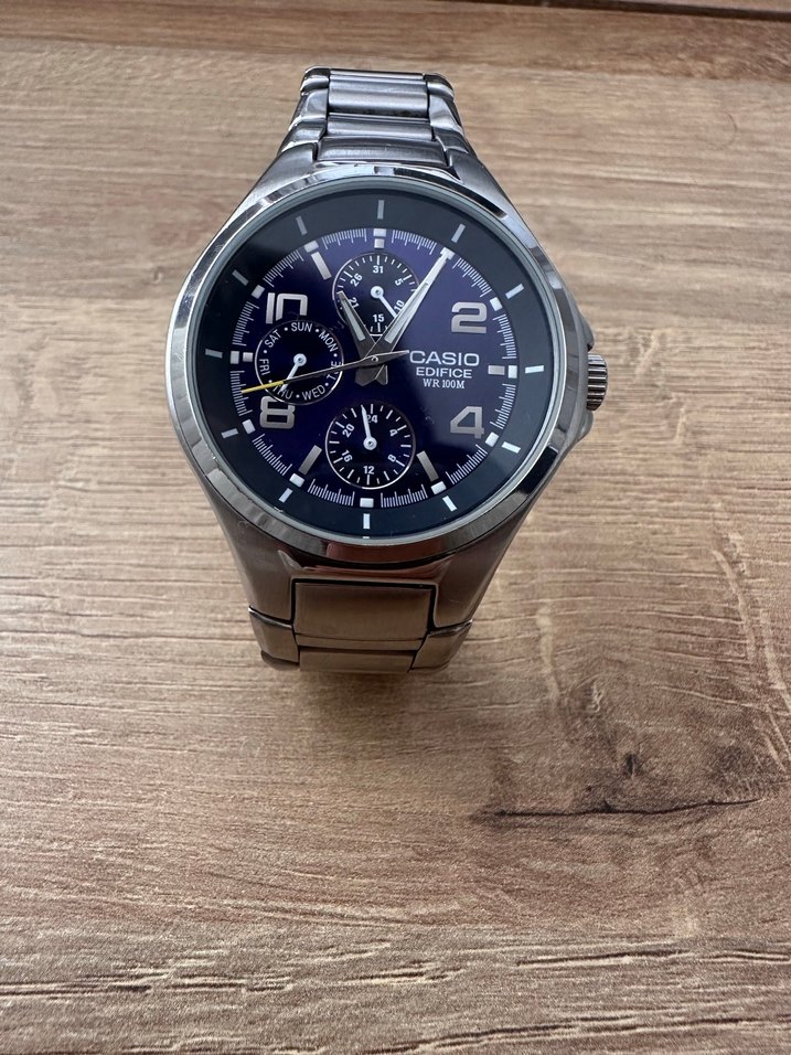 Casio Edifice erkek saati, koyu mor kadran ve paslanmaz çelik bilezikli. Çoklu alt kadranlar ve çağdaş tasarıma sahip. 100m su geçirmez. ⌚ Ürün Amerikandan alındı orijinal dir şuan üretimi olmayan bir saat