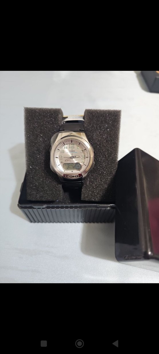 Bu Casio erkek kol saati beyaz kadranlı, analog ve dijital göstergeli, gri tonlu kasası ve siyah kayışıyla klasik ve hafif karşı kültür stilini bir arada sunar. ⌚