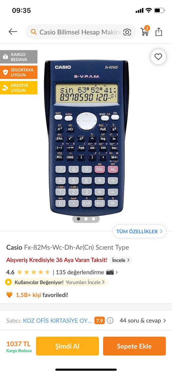 Casio Fx-82MS mavi renkli, çok fonksiyonlu bilimsel hesap makinesidir. Kimya sınavı için bir kere kullandı sorunsuz. Kutusuyla gönderilecek.