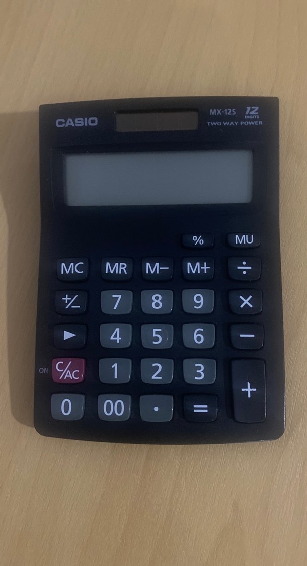 Casio MX-125Z hesap makinesi, siyah renkte, iki yönlü güç kaynağı ve çeşitli fonksiyon tuşlarıyla birlikte kompakt tasarıma sahiptir. Şuan için çalışmıyor bu nedenle fiyat uygun iade yok