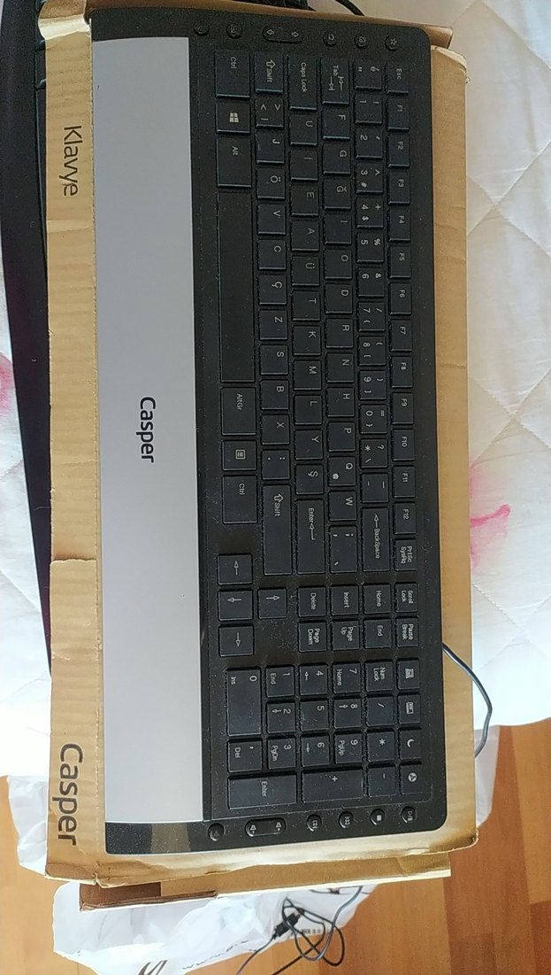 Casper marka, koyu gri renkte, tam tuş takımı ve ek fonksiyon tuşlarına sahip kablolu klavye. ⌨️