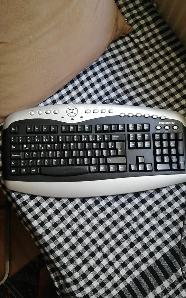 Gri renkte, Casper marka kablolu klavye. Tam tuş takımı ve üstte ekstra multimedya tuşları bulunur. Rahat yazım sağlar. ⌨️