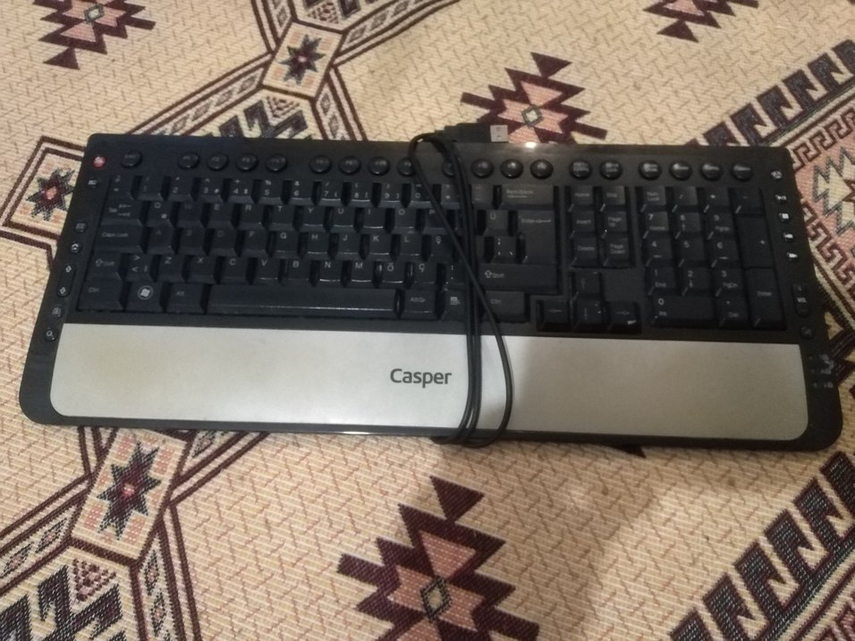 Casper marka koyu gri renkli kablolu klavye, tam tuş takımı ve fonksiyon tuşları ile kullanışlıdır. ⌨️