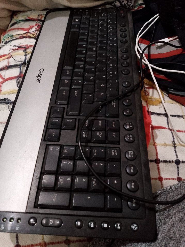 Casper marka, sayısal tuş takımı ve fonksiyon tuşları bulunan kablolu gri klavye. Güvenilir bağlantı sağlar. ⌨️
