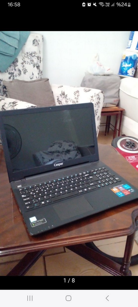 Tam klavyeli ve ekranlı Casper siyah dizüstü bilgisayar. Günlük bilgisayar işlemleri için uygundur.