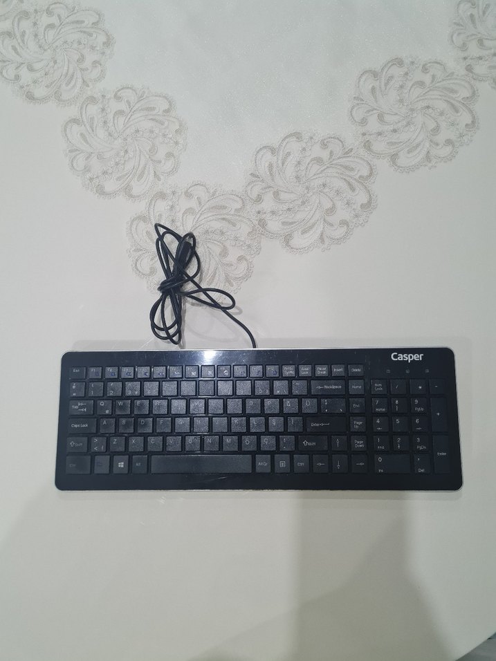 Casper marka siyah kablolu klavye tertemiz sorunsuz çalışır durumda