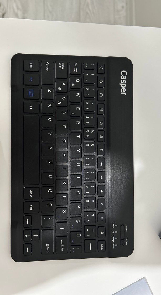 Casper siyah kablosuz klavye, kompakt tasarımı ve koyu renk tuşları ile rahat bir yazma deneyimi sunar. Multimedya kısayolları mevcuttur. ⌨️