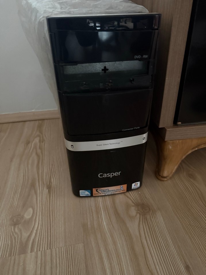 DVD-RW sürücülü siyah Casper masaüstü bilgisayar kasası.