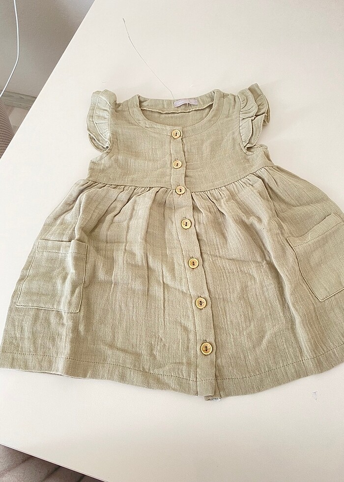 Haki yeşil müslin elbise e bebekten alındı