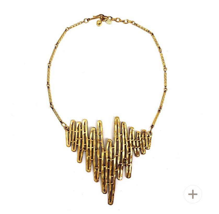Altın renkli, zincir detaylı ve avant-garde desenli bohem kolye. Romantik akşamlar için midi uzunlukta, zarif bir tasarım. ✨